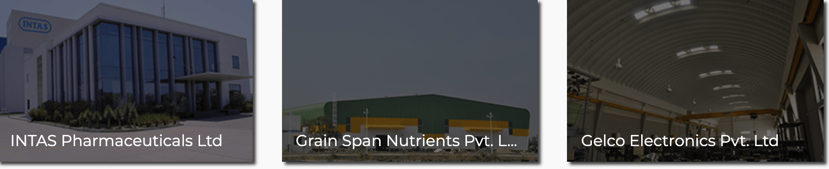 These projects primarily involve the construction of industrial buildings for pharmaceutical plants, food processing units, engineering units and manufacturing and processing facilities. Company has significant experience in undertaking industrial projects that cater to the specialized needs of pharmaceutical manufacturers. Some of the significant industrial projects completed by PSP Projects in the past include constructing the manufacturing and processing facilities for customers such as Torrent Pharmaceuticals Limited, Nirma Limited, Intas Pharmaceuticals Limited, Cadila Healthcare Limited, Claris Injectables Limited, KHS Machinery Private Limited and Inductotherm (India) Private Limited.