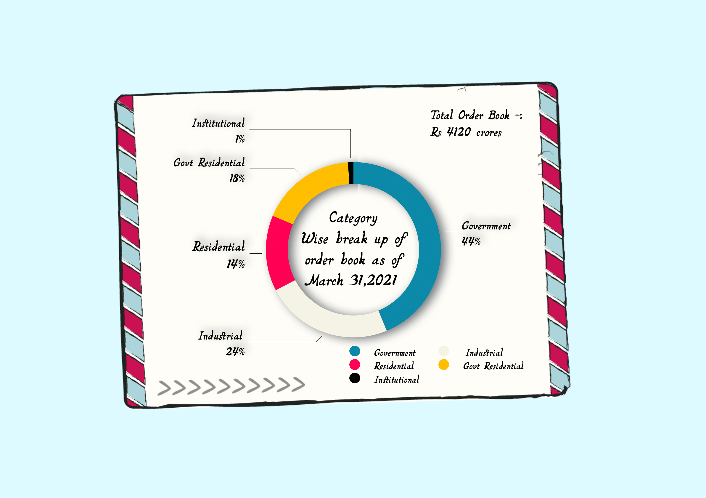 At the end of FY ’21 Company stands with robust and highest ever order book of 4120.97 crore, out of these order book there is a portion of 17% that is about 730 crores is not mobilized. As the work is not progressing due to clearance issues and other hindrances, remaining 83% of the order book is fully mobilized and work has started.